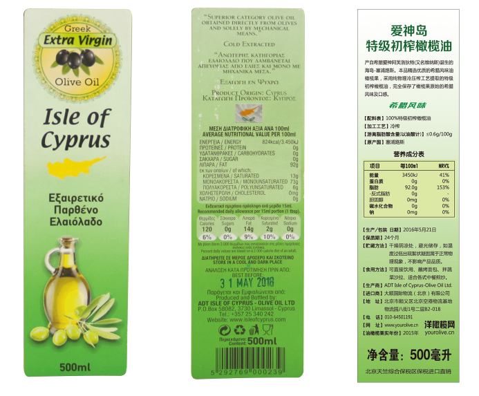 愛神島特級初榨橄欖油標(biāo)簽(樣例)