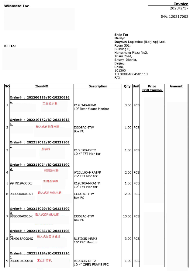 空運(yùn)、海運(yùn)、快件-發(fā)票(樣例)