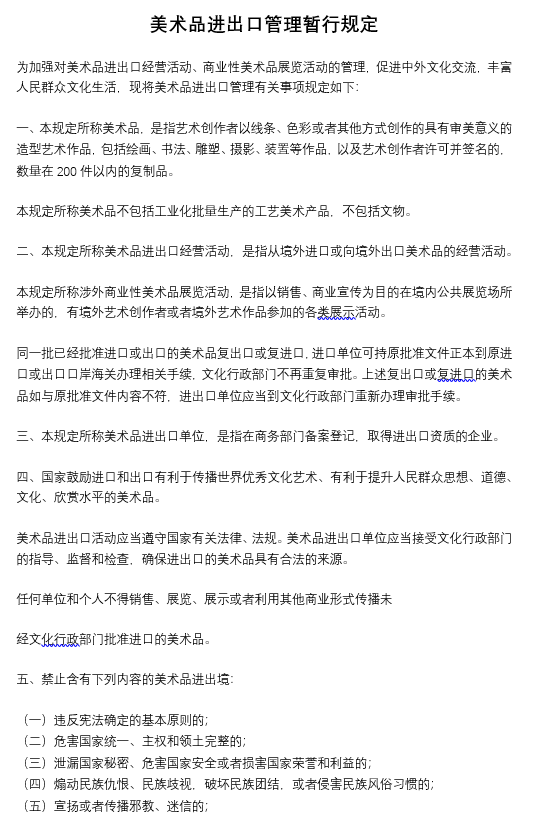 美術(shù)品進(jìn)出口管理暫行規(guī)定