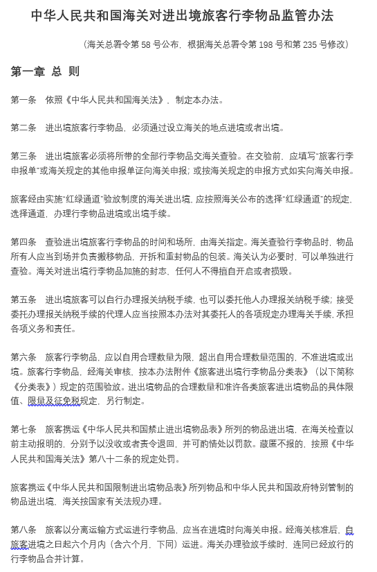 中華人民共和國海關(guān)對進(jìn)出境旅客行李物品監(jiān)管辦法